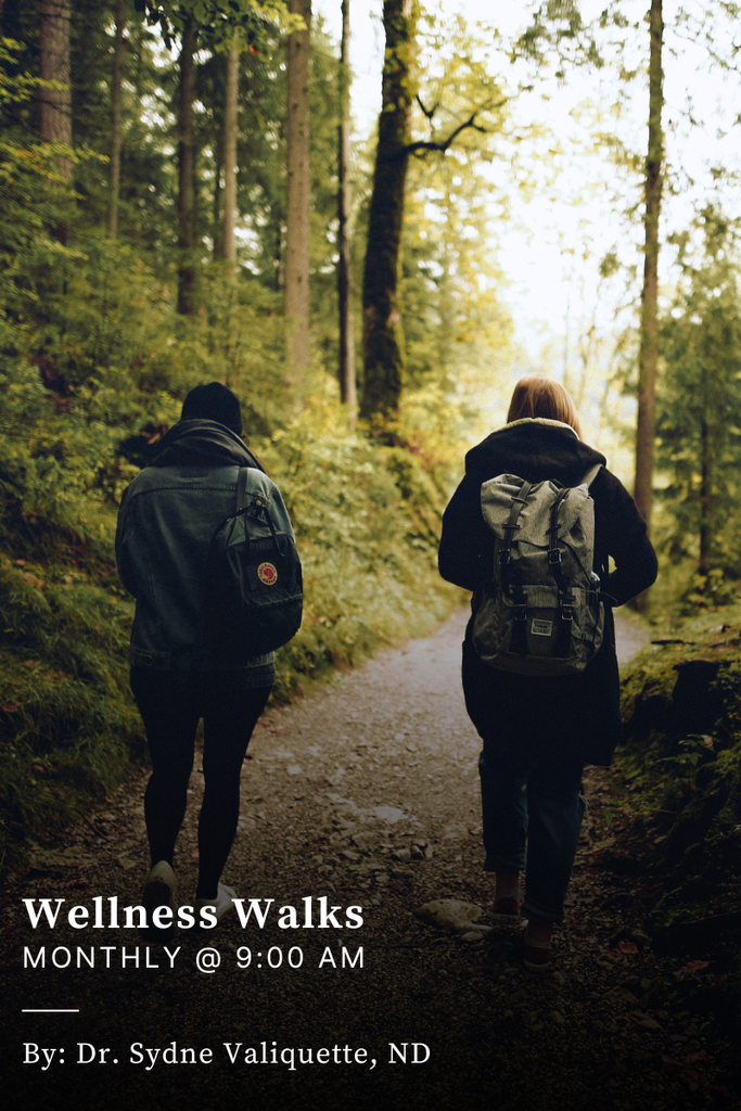 Each month, walk & talk with a Naturopathic Doctor - each session will include 30-45 minutes of lecture on a themed topic in a seated location, and then 15 minutes of movement in the forest with a licensed practitioner/therapist.