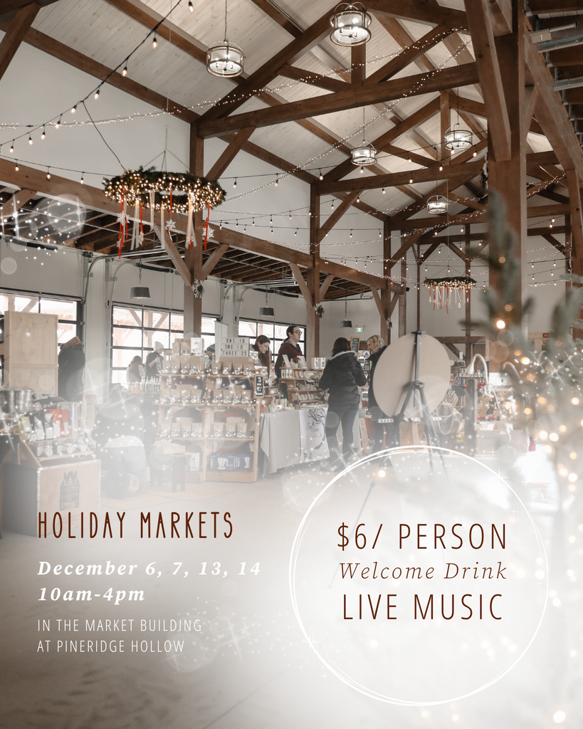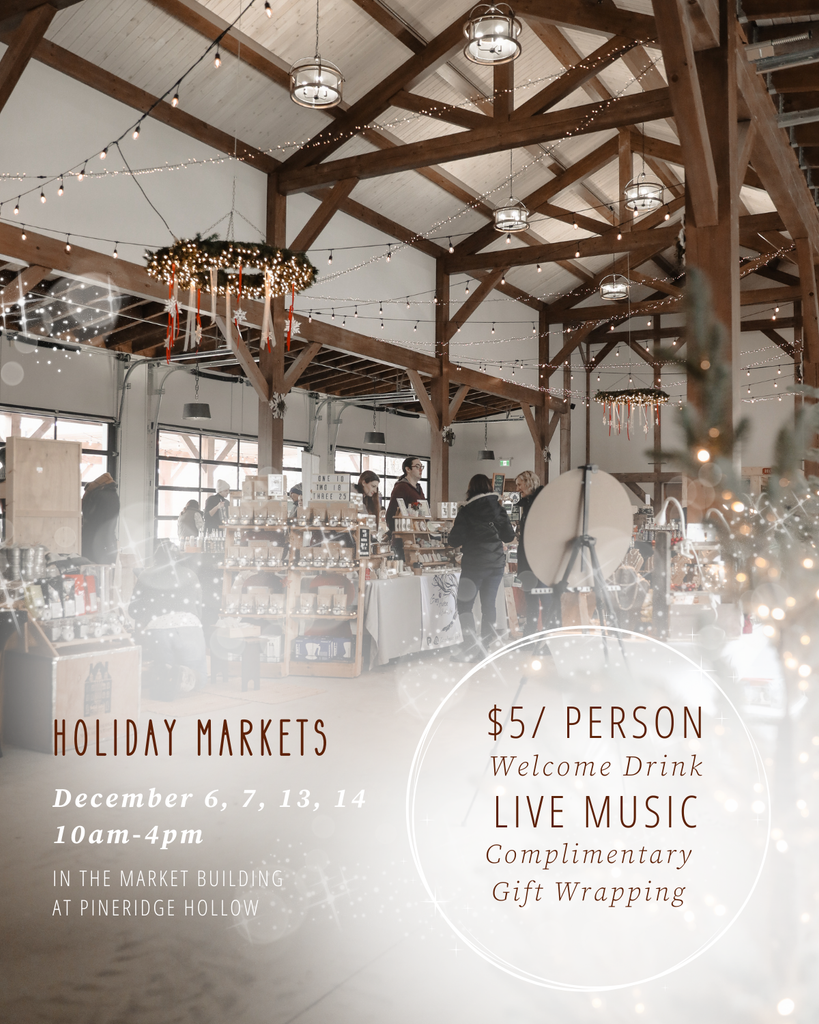 Four days in December where you can do your holiday shopping with 30 local makers. Enjoy a warm welcome beverage, listen to live music and enjoy the holiday decor in our grand market building!