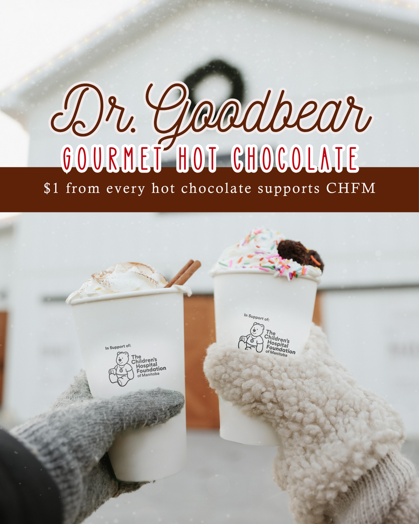 Enjoy a heartwarming gourmet hot chocolate from Pineridge Hollow restaurant! Flavours change regularly, but every Dr. Goodbear Hot Chocolate includes a $1 donation to the Children's Hospital Foundation of Manitoba.